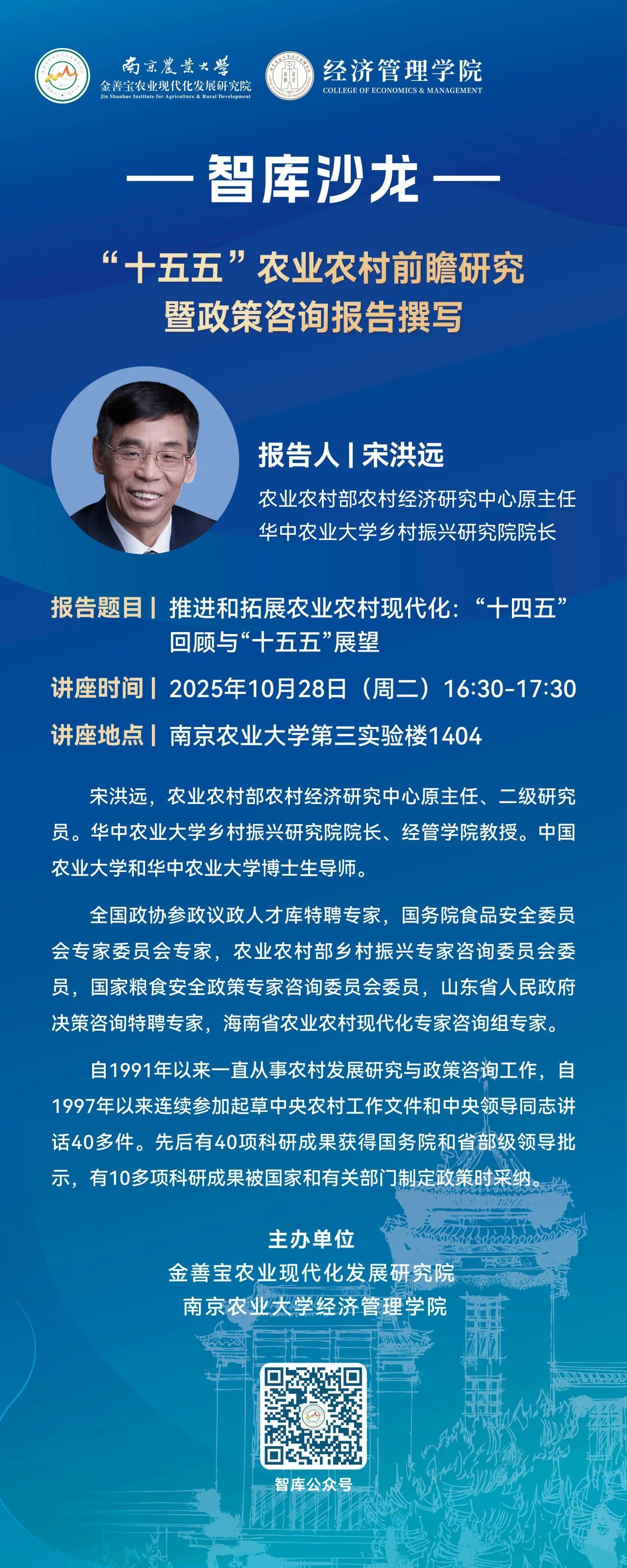 讲座通知 | 推进和拓展农业农村现代化“十四五”回顾与“十五五”展望